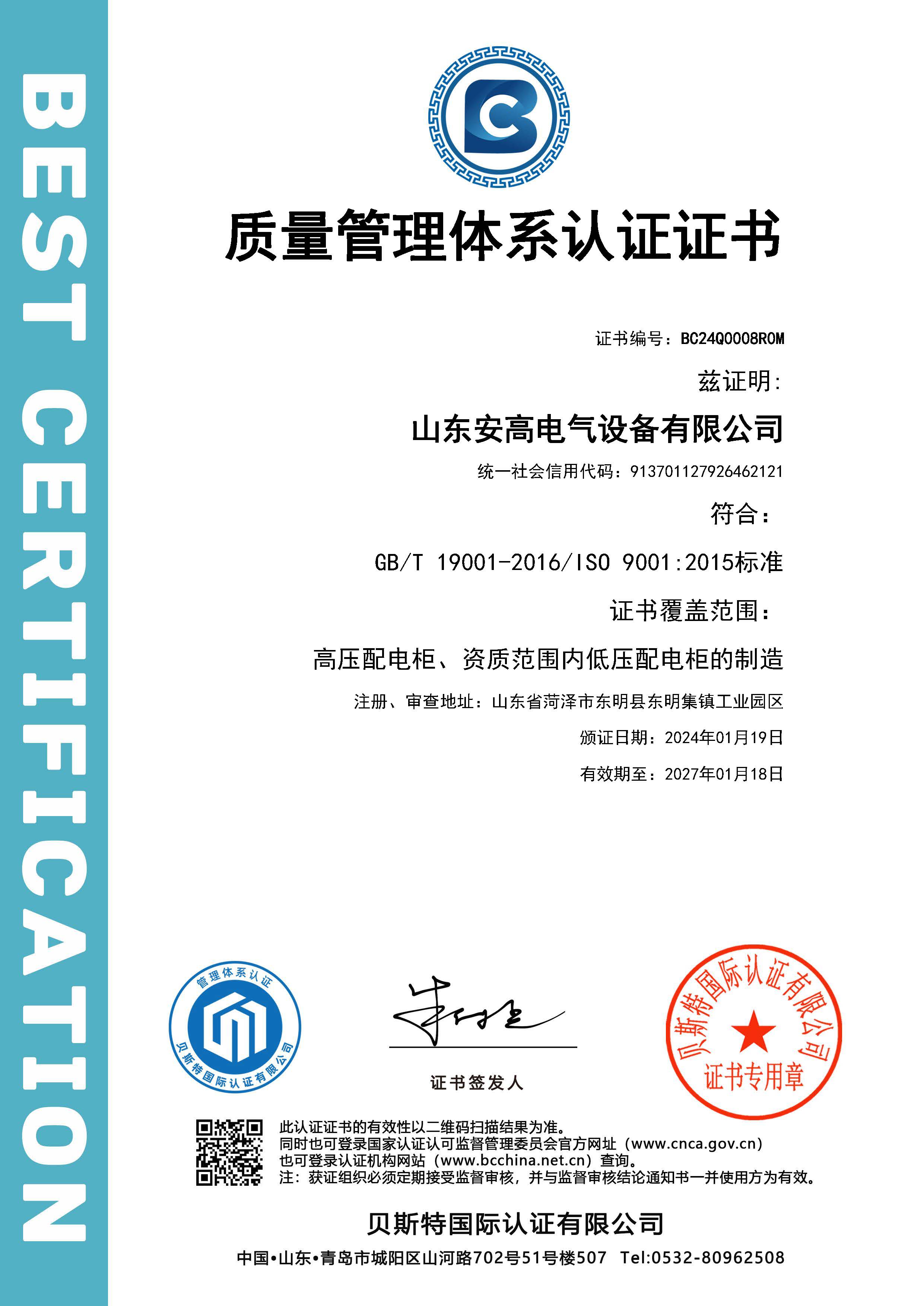 • 質(zhì)量管理體系認(rèn)證